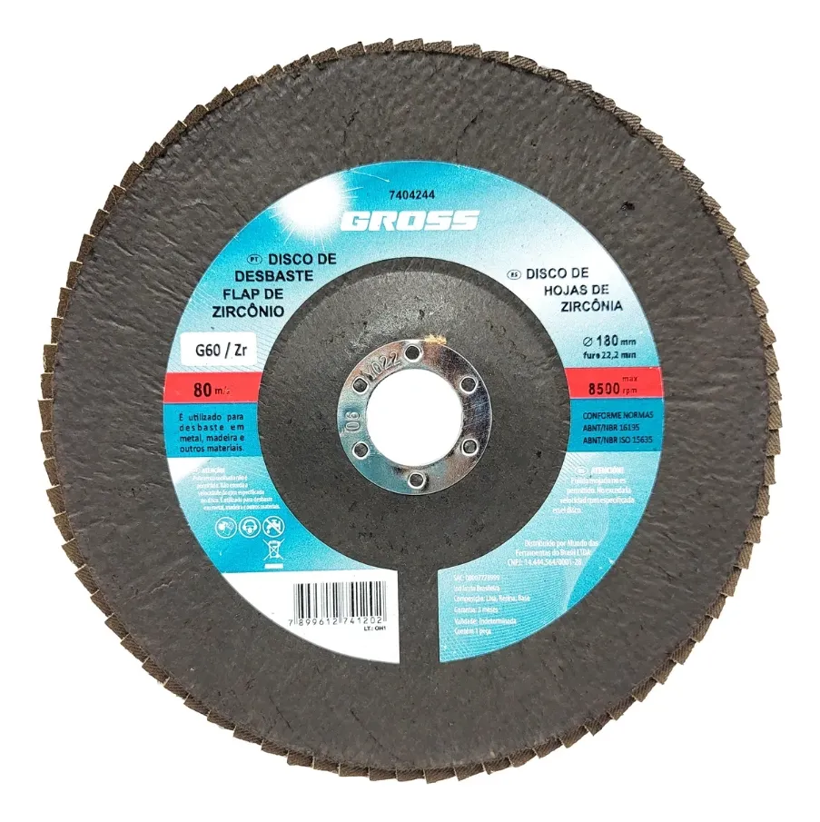 DISCO FLAP DE ZIRCÔNIO GRÃO 60 – 115MM x FURO 22,2MM – GROSS – MODELO 7401744