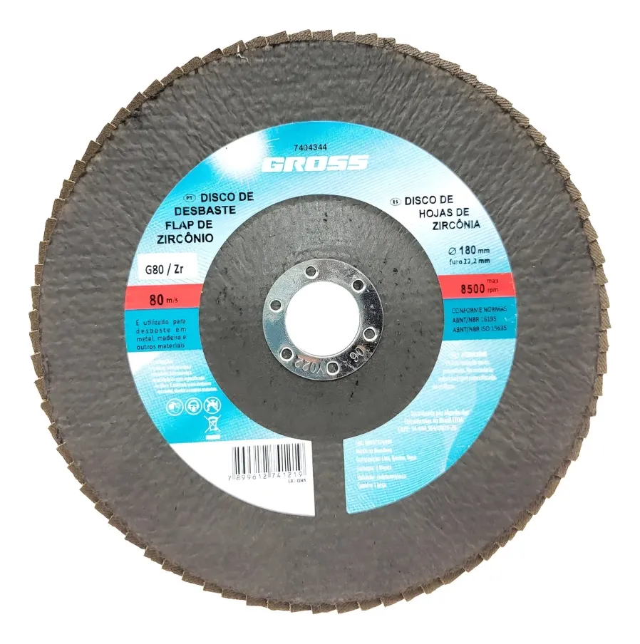 DISCO FLAP DE ZIRCÔNIO GRÃO 80 – 115MM x FURO 22,2MM – GROSS – MODELO 7401844