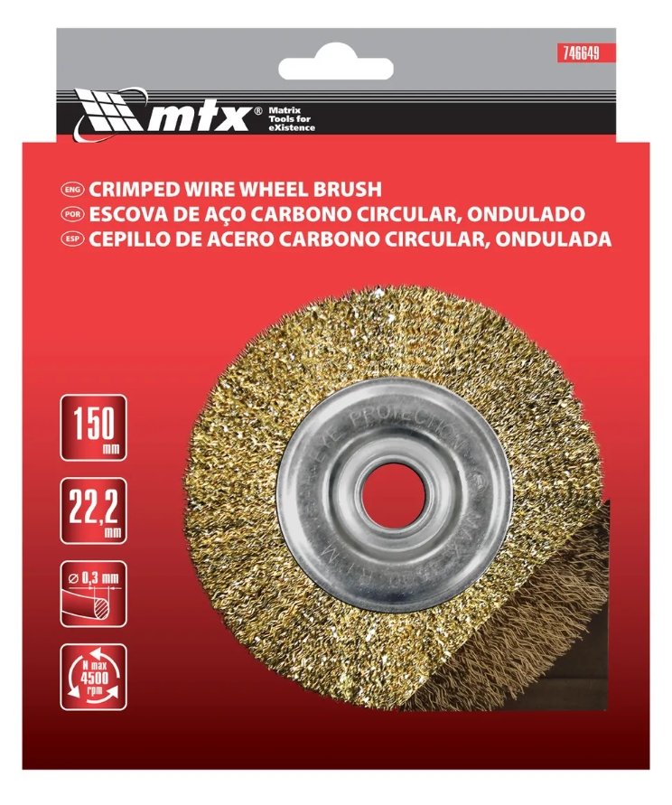 A ESCOVA DE AÇO CARBONO CIRCULAR PARA ESMERILHADEIRA MTX 746649 REDEFINE O PADÃO DE LIMPEZA E PREPARAÇÃO DE SUPERFÍCIES, COMBINANDO EFICÁCIO, DURABILIDADE E VERSATILIDADE. SEJA PARA TRABALHOS DE RESTAURAÇÃO, MANUTENÇÃO OU ACABAMENTO, ESTA ESCOVA É UMA ESCOLHA EXCEPCIONAL QUE PROMETE RESULTADOS DE ALTA QUALIDADE, MANTENDO AS SUPERFÍCIES TRATADAS EM PERFEITO ESTADO.