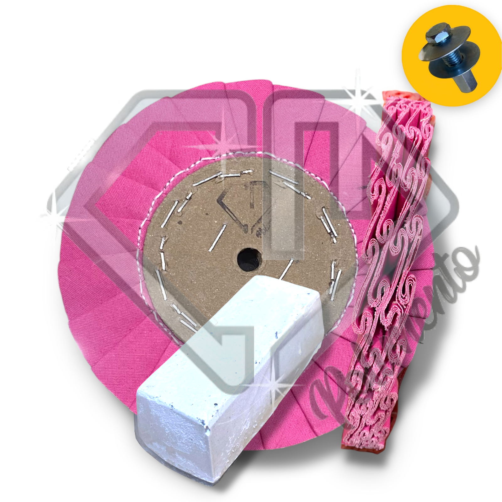 nossas rodas / boinas de polimento são feitas para serem usadas com nossas massas abrasiva, sem elas o poder de abrasão da roda é quase nulo. apenas a roda de flanela trabalha sem a massa pois ela é muito macia e indicada para o lustro e limpeza final do material