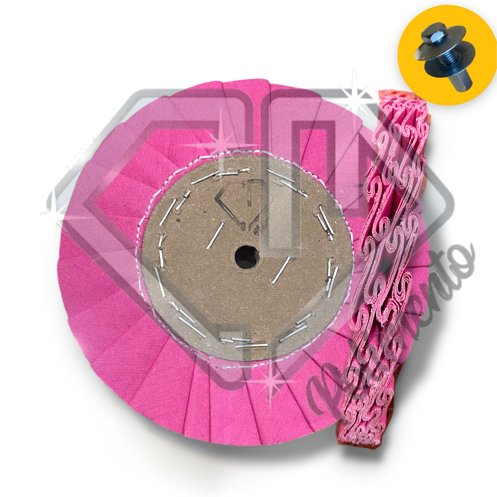 1 disco plissado vermelho 200mm (20cm ou 8 polegadas) – usada com massa branca para corte, polimento fino e abertura de brilho