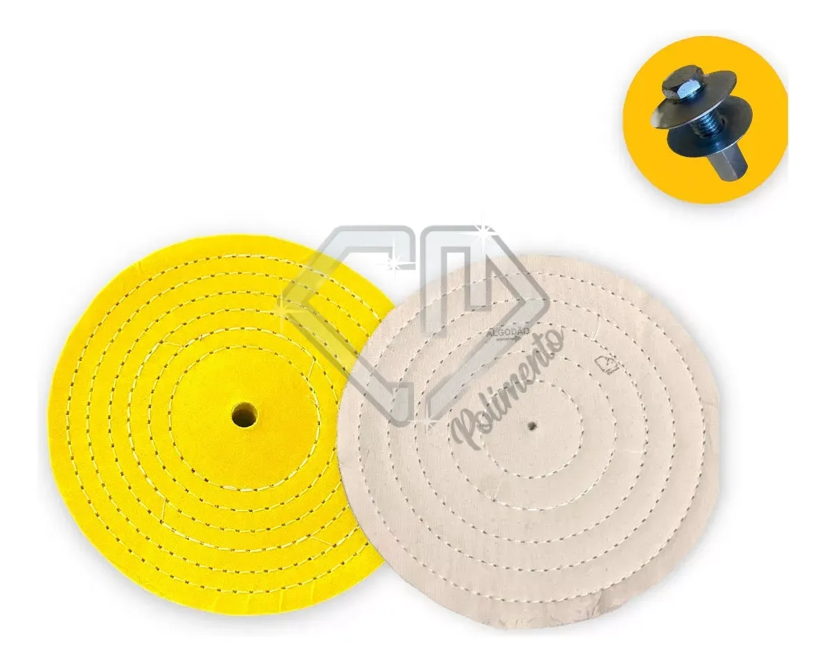 1 roda algodão amarelo 200mm (20cm ou 8 polegadas) – usada para alto brilho