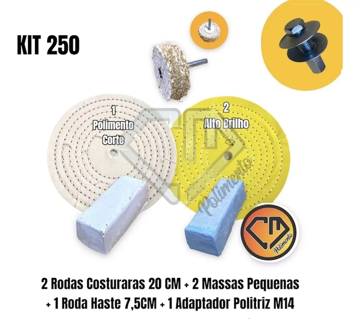 Kit 250 – Polimento Brilho Inox Aluminio Tanque Rodas Frisos 20CM