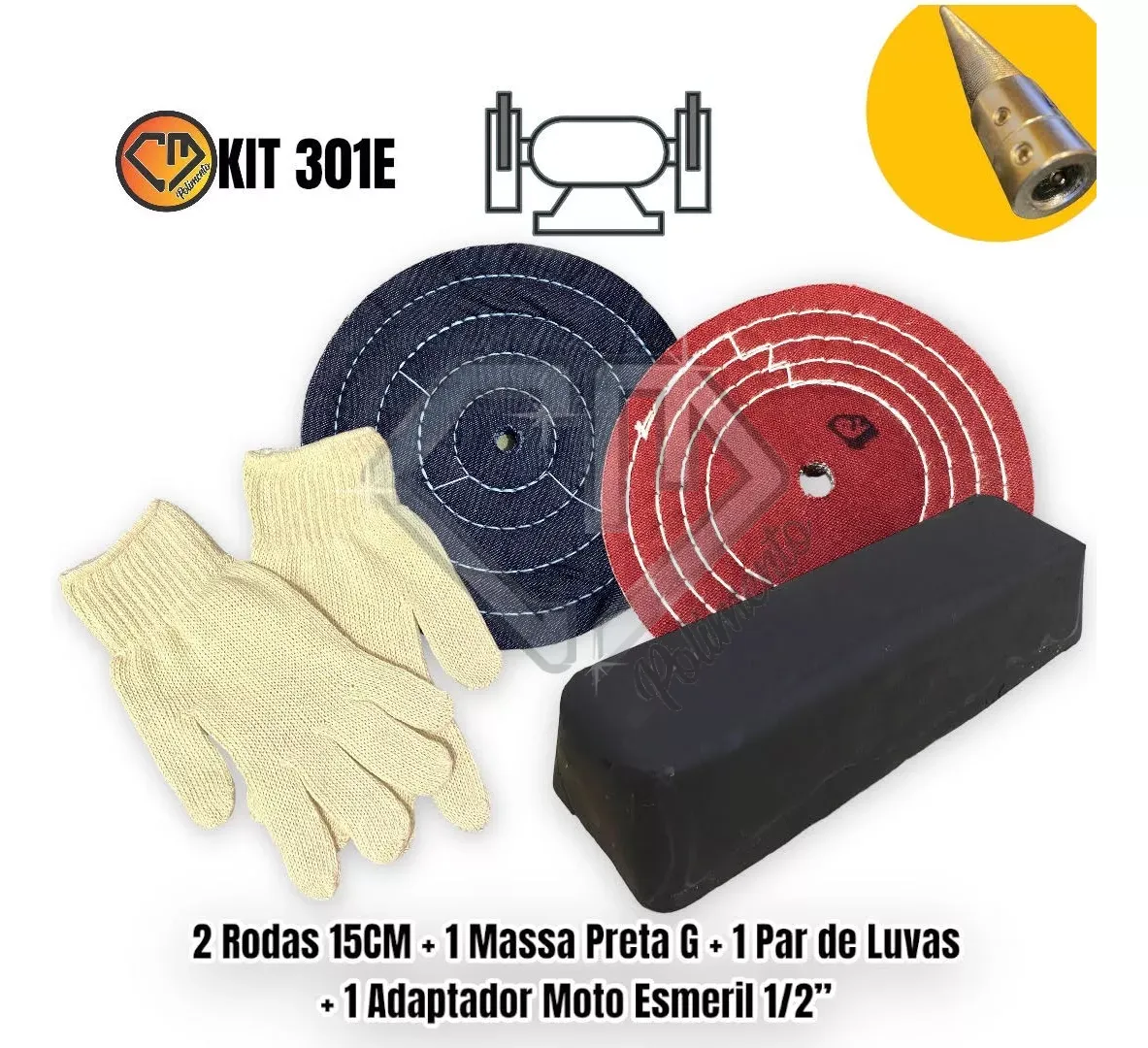 Kit 301 – 15CM Esmeril Polimento Ferro Aço Chapa Cutelaria Inox