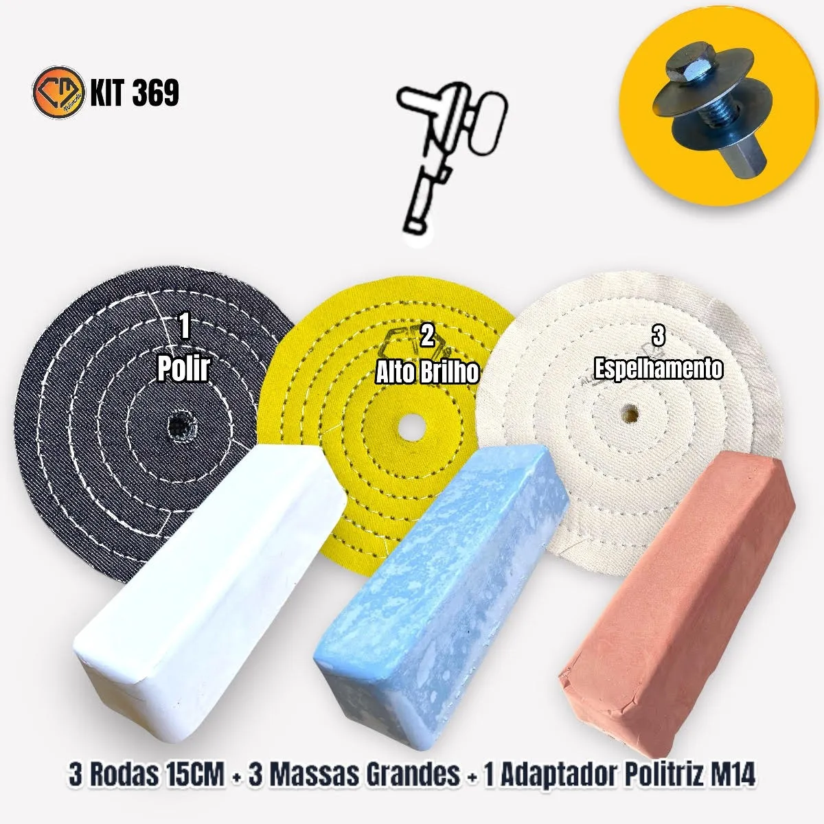 KIT 369 – 15cm Polimento Brilho Espelhamento Rodas Aluminio Inox Moto